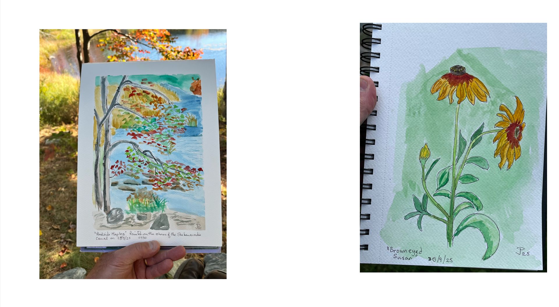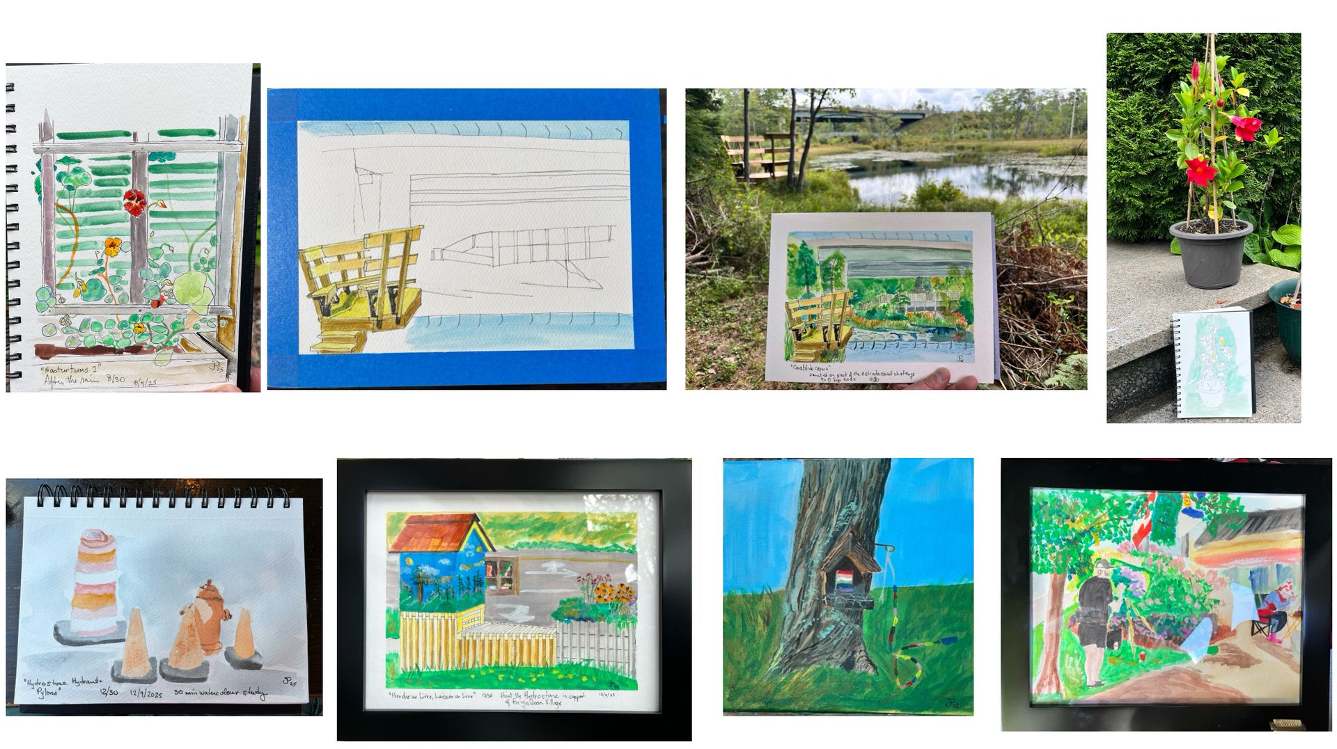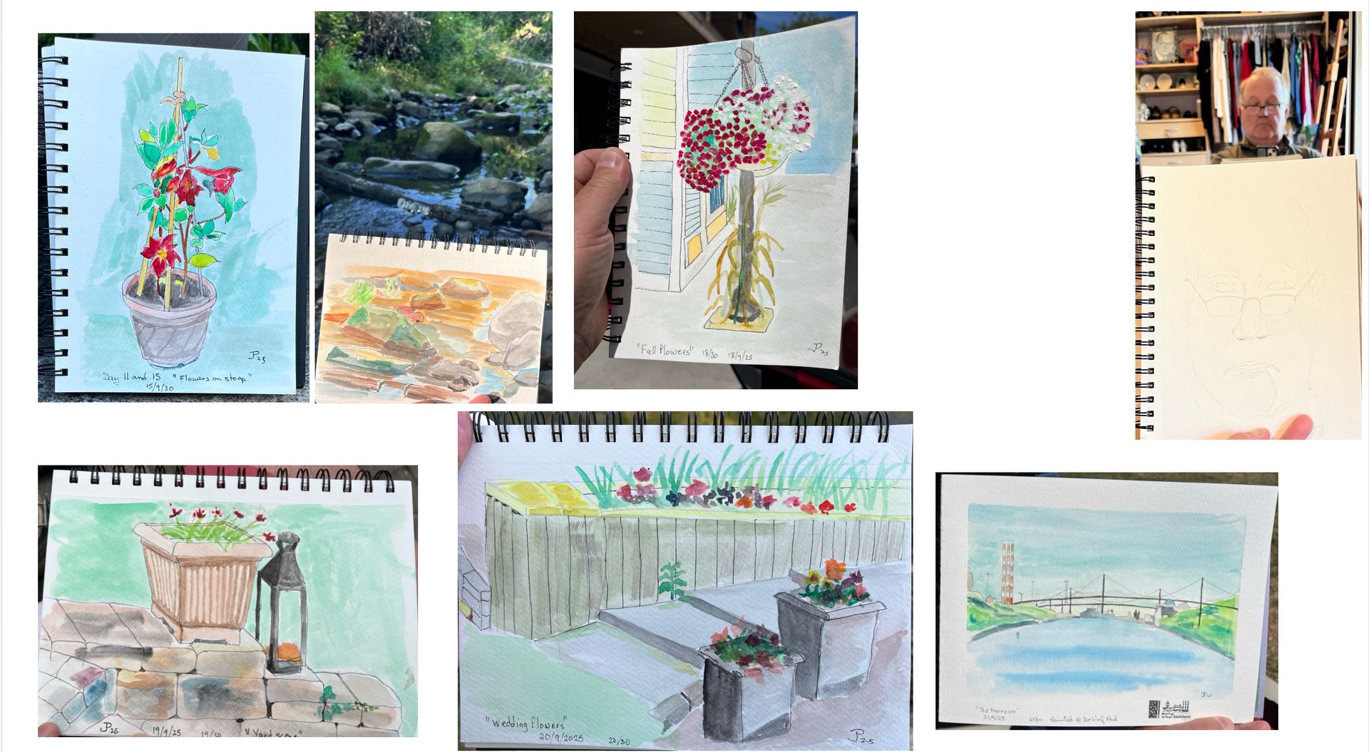 Strada Easel Challenge week 3 - flowers on stoop part 2, Sackville river, kentville, start of self portrait, yard scene, wedding flowers and ‘the narrows” (with @HalifaxUSK).