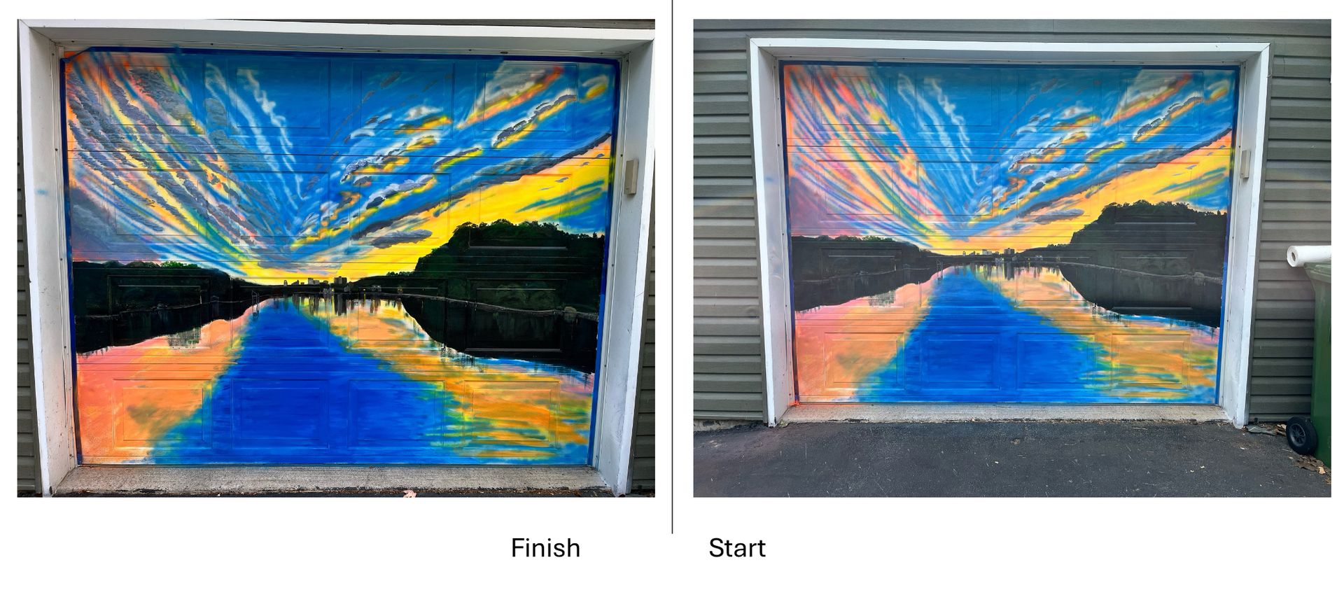 Strada Easel Challenge week 2 - Nasturtiums 2, the Crown in two parts, part 1 of flowers on stoop, pylons in the Hydrostone, and three entries into Paint the Hydrostone. The fairy door was also painted as part of a @HalifaxUSK outing